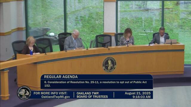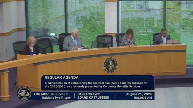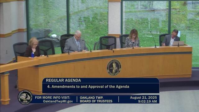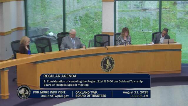 Held Aug. 21, 2025; Township Hall, 4393 Collins Rd, Rochester, MI 48306.