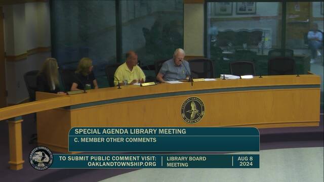 Library Board Meeting held August 8, 2024; Charter Township of Oakland 4393 Collins Rd Rochester MI 48306