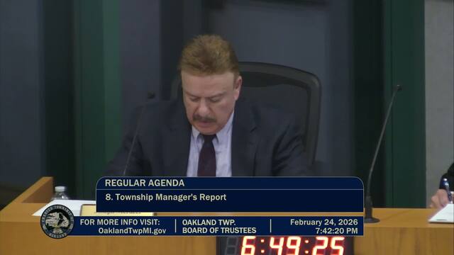 Held Feb 24, 2026; Township Hall, 4393 Collins Rd, Rochester, MI 48306.