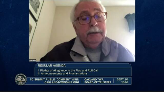 Board of Trustees Meeting held September 10, 2020; Oakland Township 4393 Collins Rd Rochester MI 48306