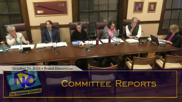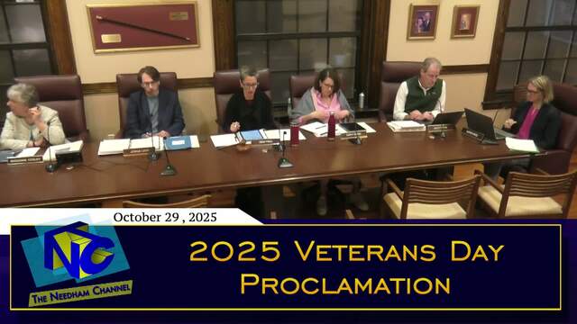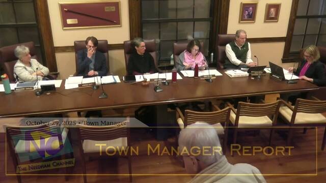 Needham Channel coverage of the Needham Select Board meeting held in the Select Board Chambers of Town Hall on October 29, 2025.